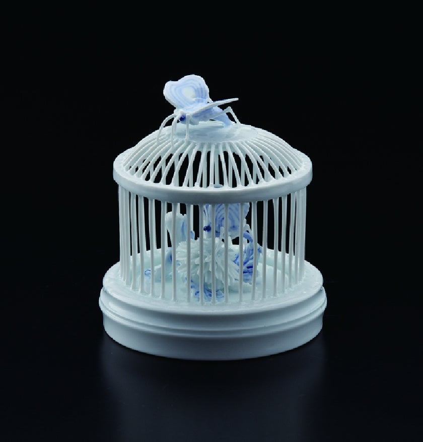●白磁細工「虫かご」蝶,菊 (径8.5×高さ9.8cm)