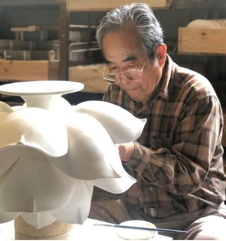 今村均氏。本展では、今村均氏の代表作、白磁細工「虫かご」、「白龍」、「蓮」など、一品物を中心