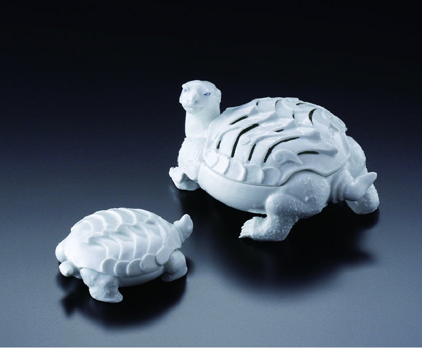 なりました。平戸白磁の原料の特性上、これまで大きな捻り細工品は珍しく、大掛かりな貼付け