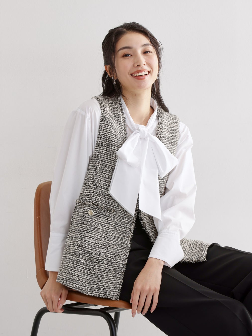 着回しに活躍する各アイテムの単品使いで、カジュアルダウンしたコーディネートもお楽しみください。