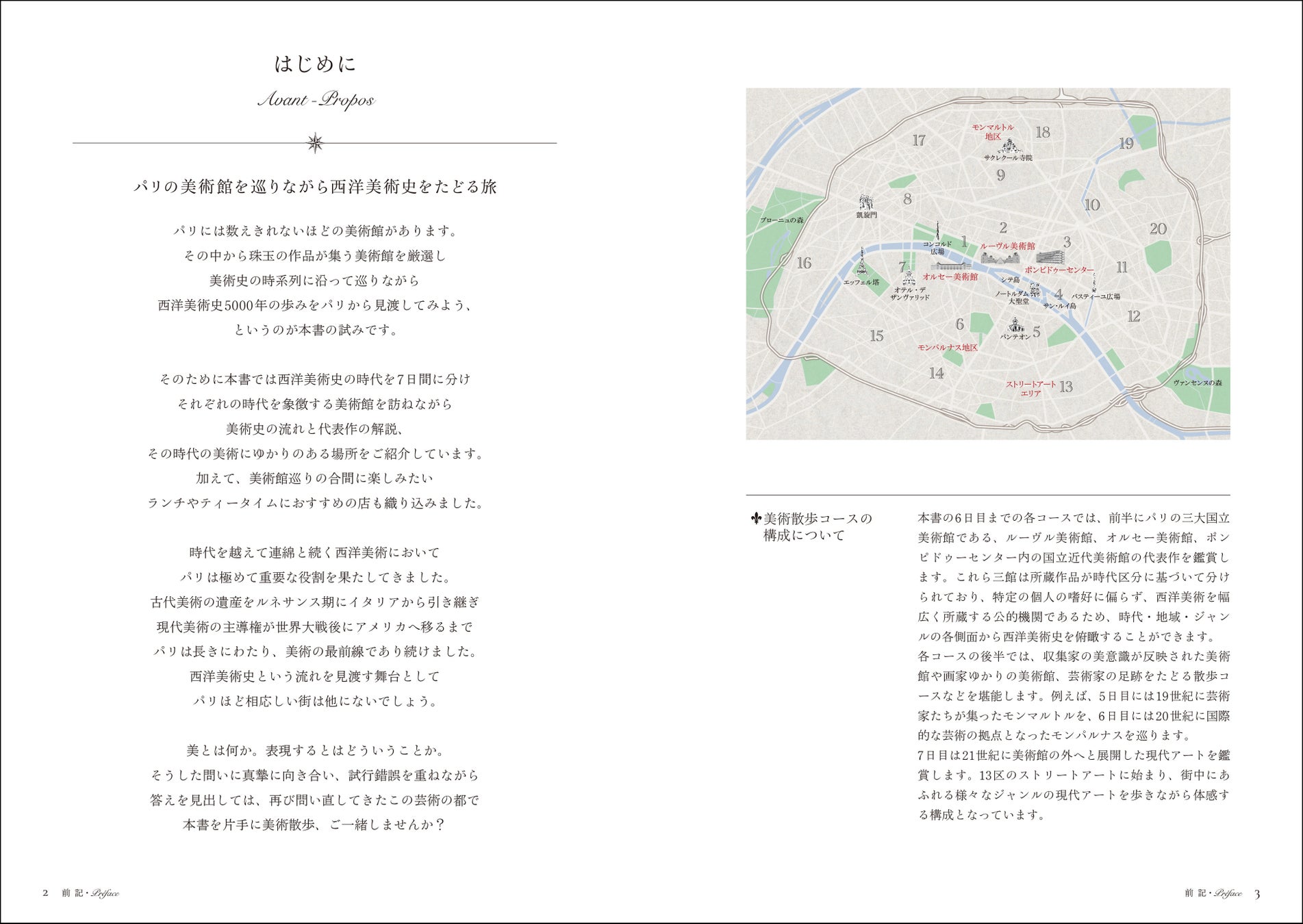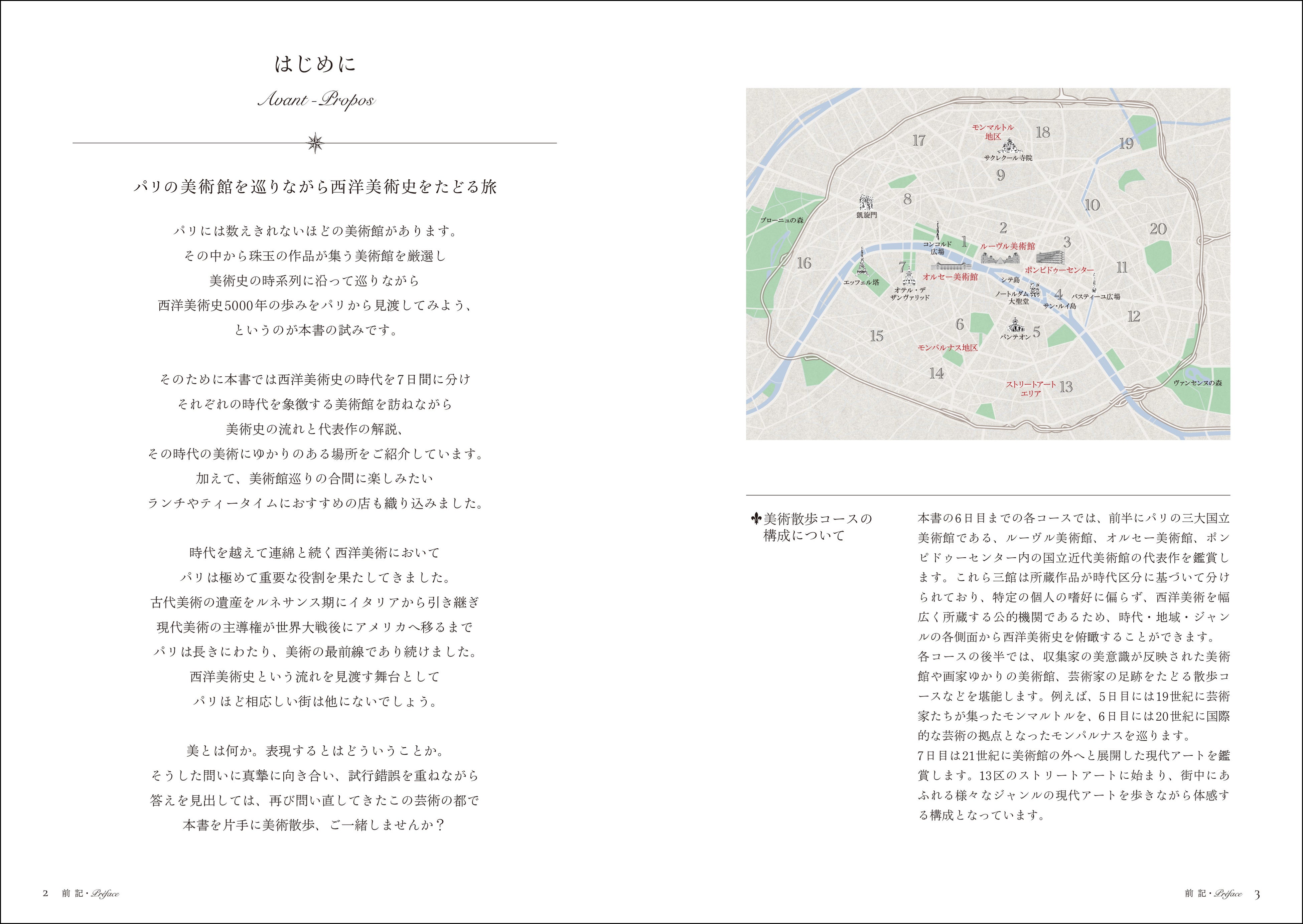2024年刊行の『パリの歴史散歩ノート』に続くシリーズ第2弾として、美術史を時代ごとに7日間の散歩ルートに分け、美術館や必見作品をめぐるモデルコースを提案します。