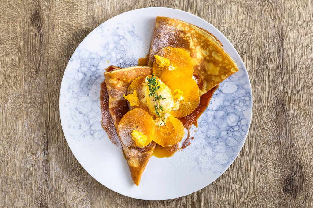 ◆オレンジとバニラアイス、クリームチーズのクレープ・キャラメル