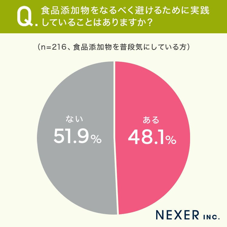■48.1%が、食品添加物をなるべく避けるために実践していることは「ある」