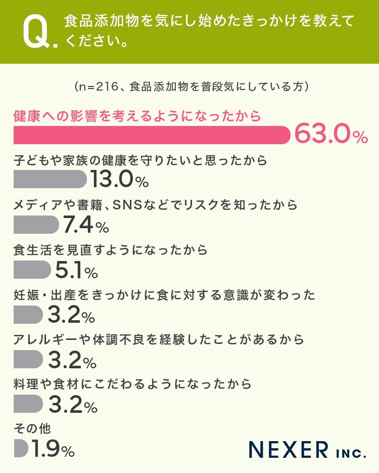 ■63%が、食品添加物を気にし始めたきっかけは「健康への影響を考えるようになったから」