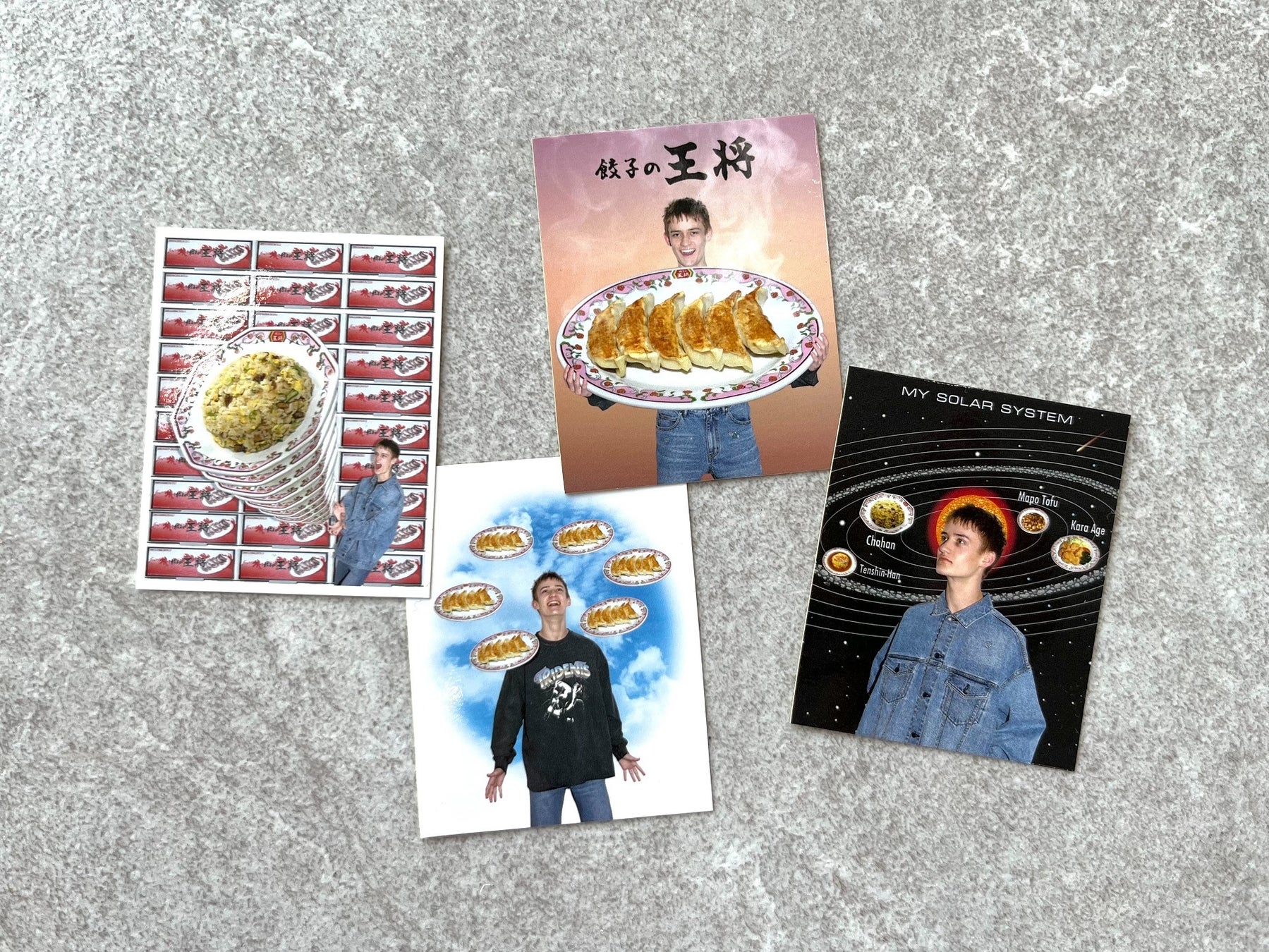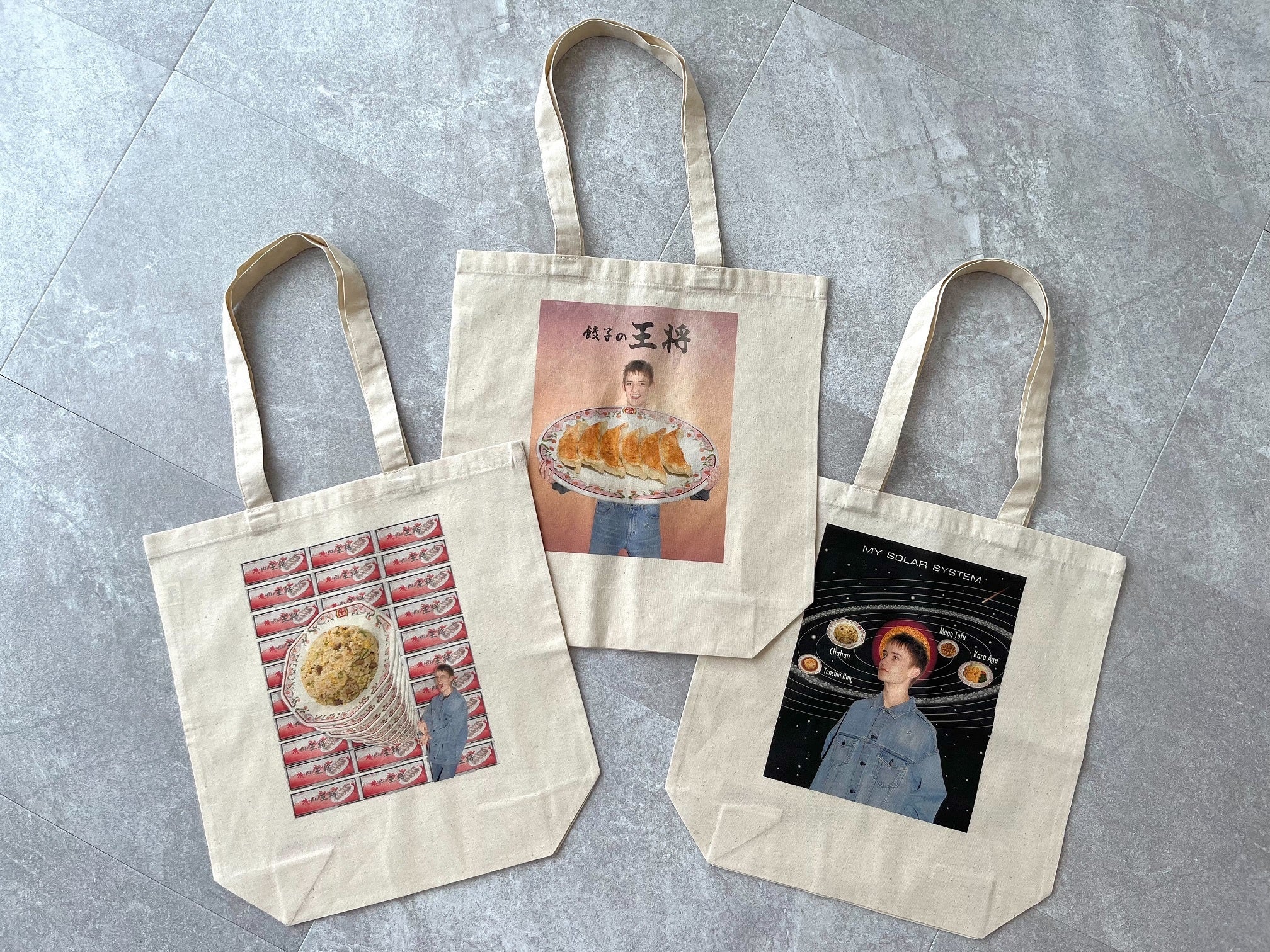 以前人気を博した「餃子の王将」コラボの門真店限定アイテムを販売。「餃子の王将」を題材に、写真家のSo Mitsuya氏が手掛けた作品をプリントしたTシャツ、トートバッグ、ステッカーの3アイテムを展開します。