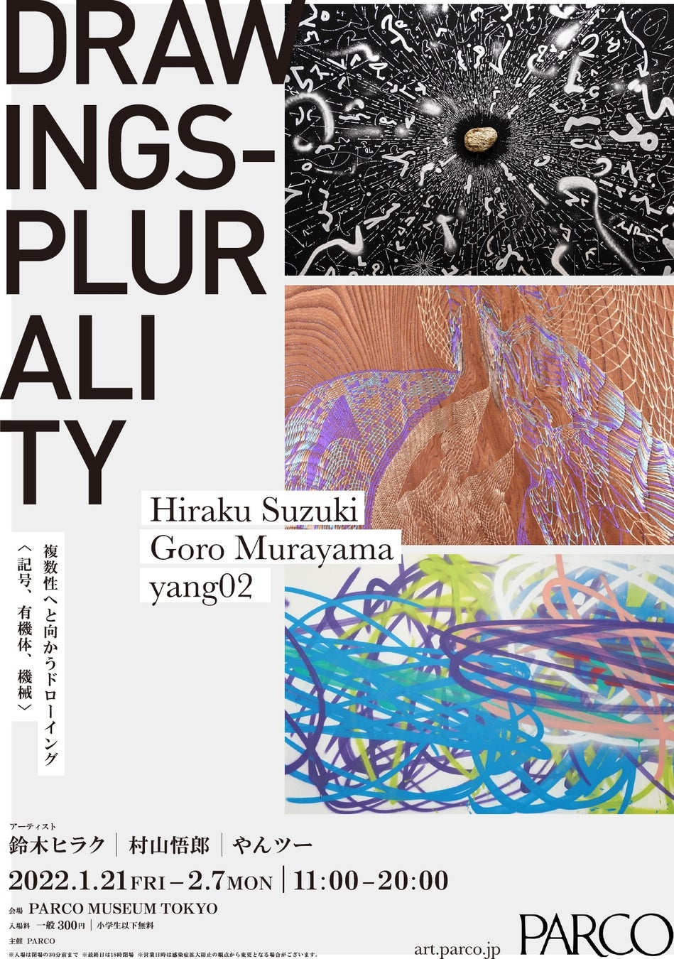 株式会社パルコ(本部:東京都渋谷区、以下パルコ)は、PARCO MUSEUM TOKYOにおいて「ドローイングとは何か?」という根源的な問いをテーマとした、鈴木ヒラク/村山悟郎/やんツーの3名による展覧会"Drawings - Plurality"を企画・開催します。