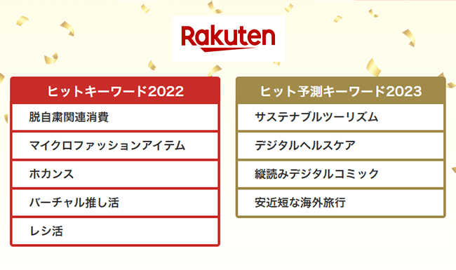 楽天、「楽天グループ ヒットキーワード2022」と「楽天グループ ヒット予測キーワード 2023」を発表