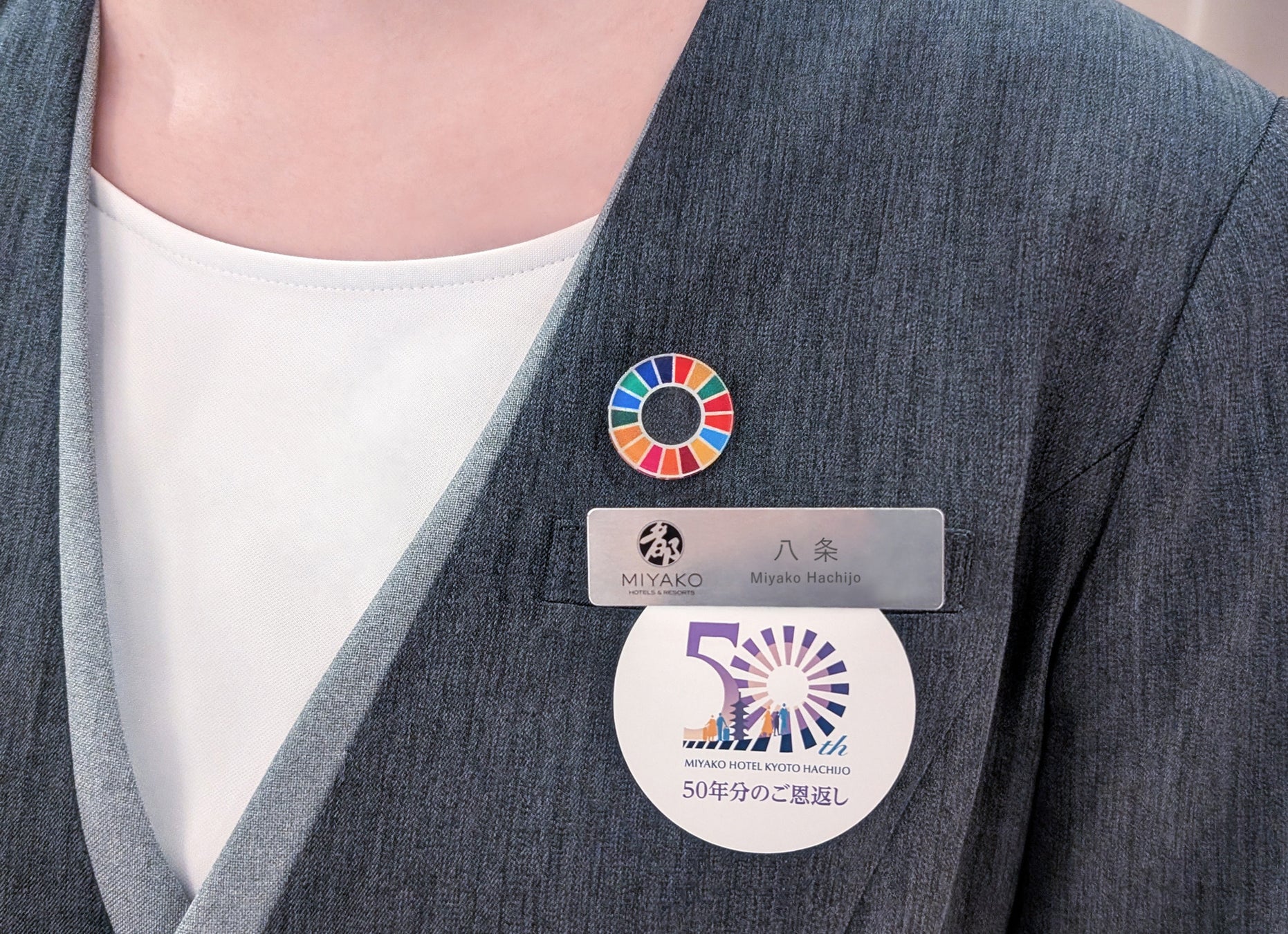 都ホテル 京都⼋条(所在地:京都市南区⻄九条院町17)は、環境保全への取組みの一環として、ホテルで使用した備品の再資源化を実践しています。このたび、感染症対策の役割を終えた飛沫防止用アクリル板を、原料リユースによるアップサイクルにて、コースターとSDGsバッジへと再生しました。廃棄焼却や再原料化によるリサイクルに比べ、CO2排出量を約90%削減できると言われるアクリルアップサイクルは地球にやさしく、コースター販売の収益を古都の文化や観光資源の保全に活用することで、京都にもやさしくなれる、そんな取組みです。