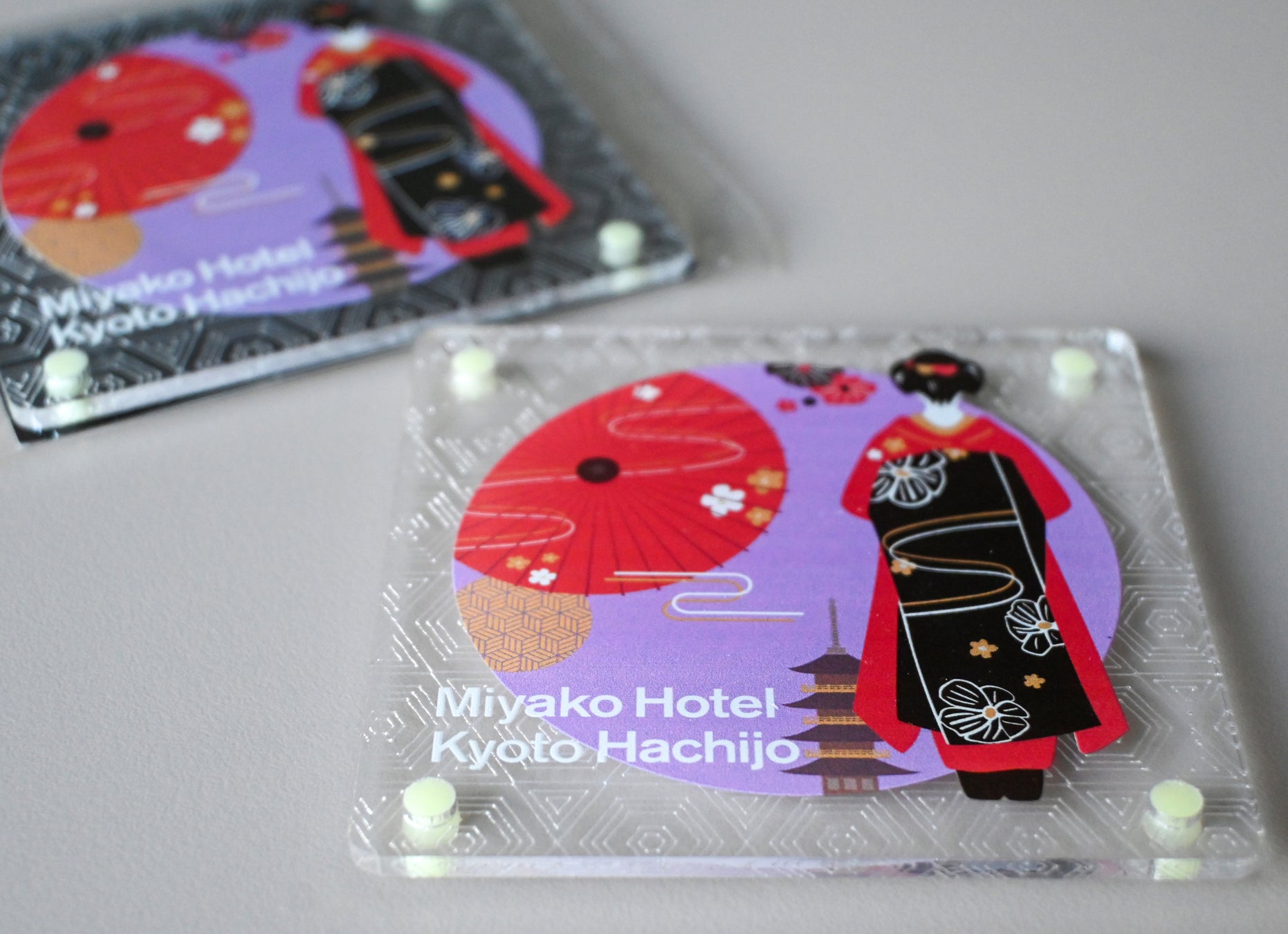 都ホテル 京都八条のSDGs「地球を想い、京都を想う。」アクリルアップサイクルで生まれたコースター&バッジ