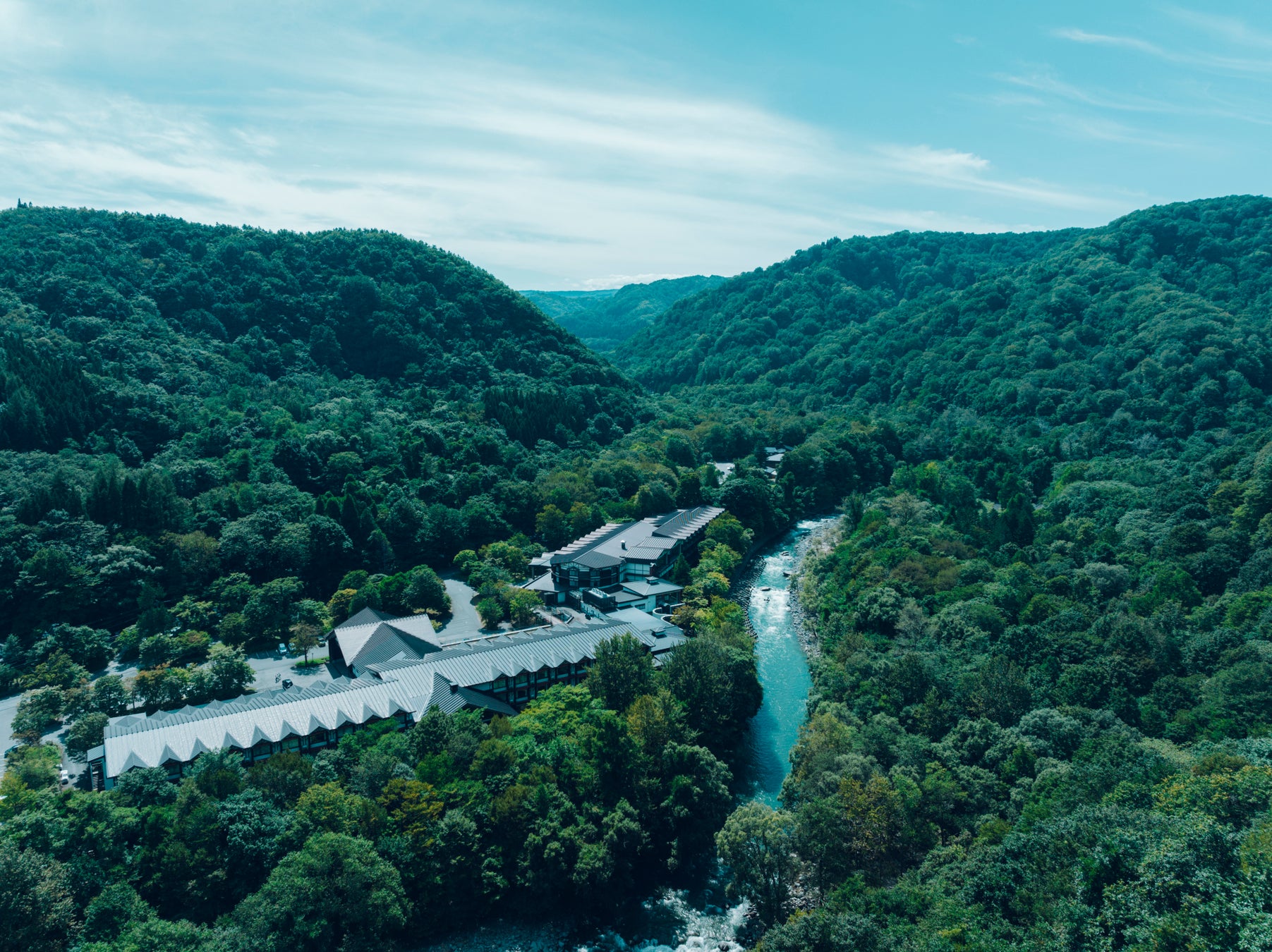 奥入瀬渓流沿いに建つ唯一のリゾートホテル(*3)。渓流が目の前に広がる露天風呂や岡本太郎作の巨大暖炉が印象的なロビーが癒しの空間を醸し出します。「渓流スローライフ」をコンセプトに心から満たされる滞在を演出します。