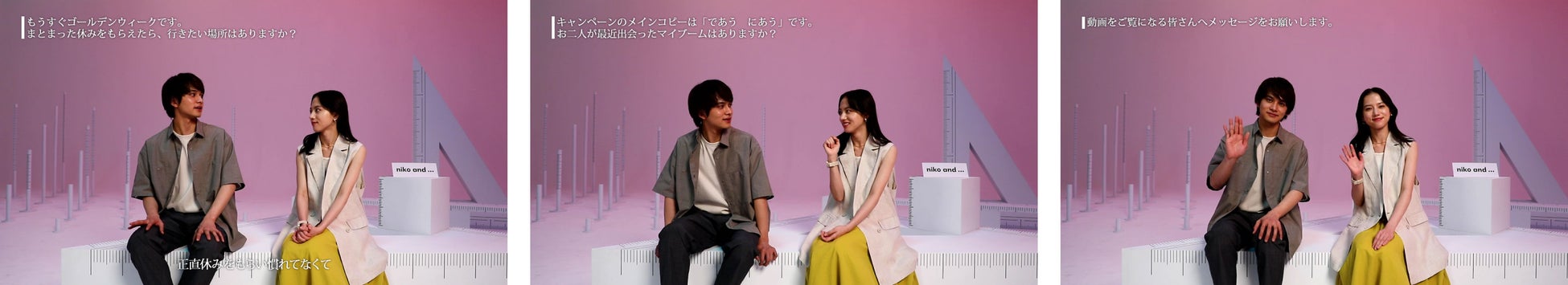 楽曲は、SNS世代を中心に人気を博すシンガーソングライター・asmi(アスミ)さんが歌う、くるりの名曲「ワンダーフォーゲル」です。また、ブランドムービーの公開にあわせ、特設サイトでは北村さん・清原さんが着こなす、niko and ...の春の最新スタイリングを掲載します。さらに、公式YouTubeでは、お2人へのインタビュー動画とメイキング動画も公開します。インタビューではお2人が「距離」について感じていることや、ゴールデンウィークにやりたいこと、最近出会ったマイブームについて語っています。さらに、楽曲の歌唱を担当したasmiさんへ歌唱しての感想や、普段楽曲を制作する際にインスピレーションを受けるものなどについてインタビューをし、4月28日以降にブランドサイトにて公開します。
