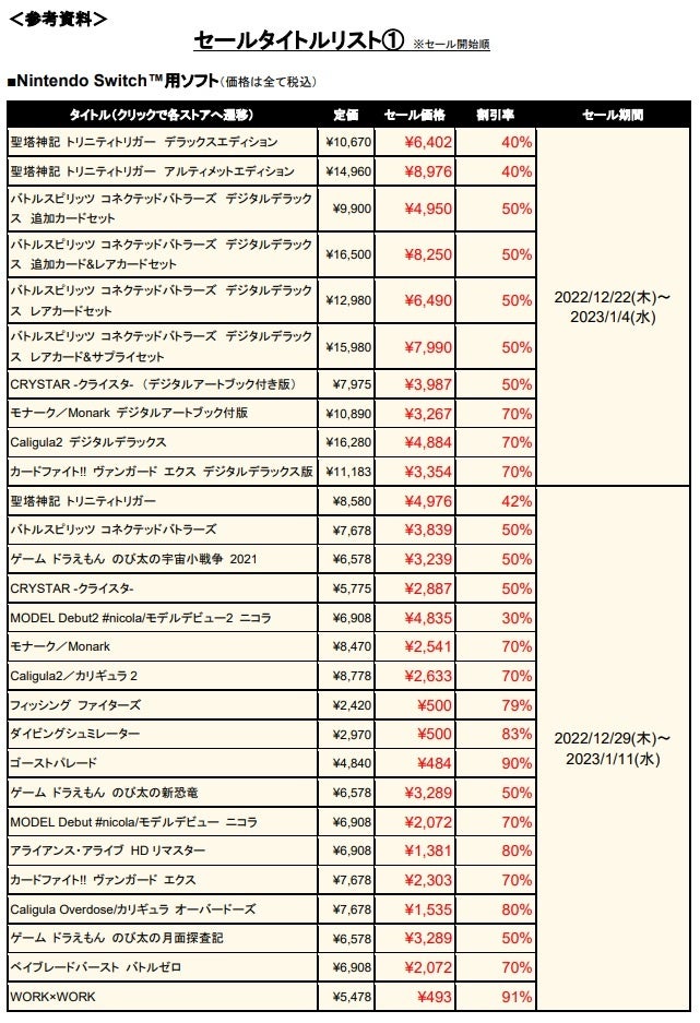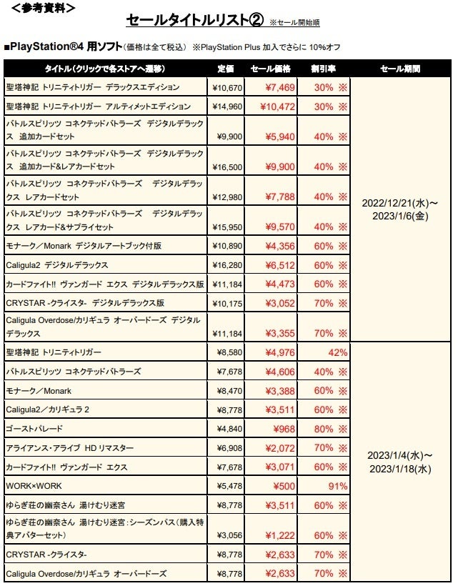 その他のセールタイトル、セール期間など詳細はセールタイトルリストをご覧ください。