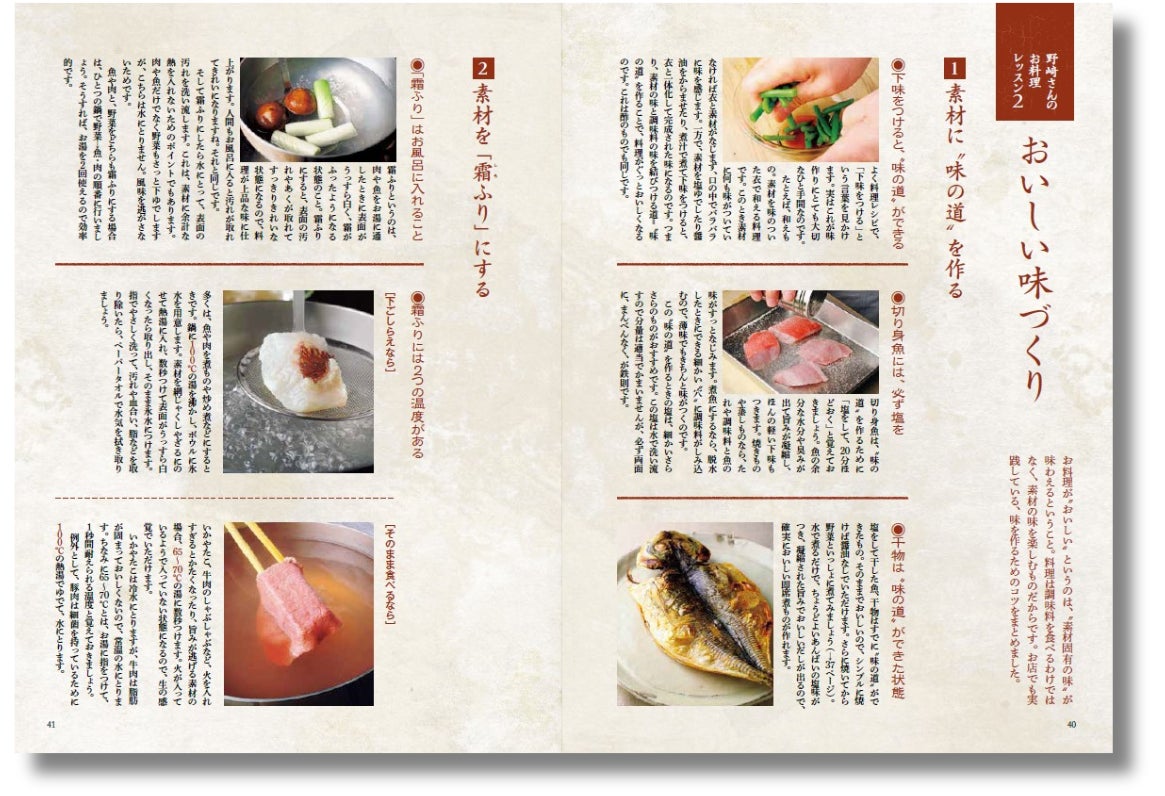 料理界きっての理論派、野﨑さんはつねに「どうしてこうするのか」を説き明かしてくれます。この本でも各料理につけた「あどばいす」などで、読者に直接メッセージを届けています。