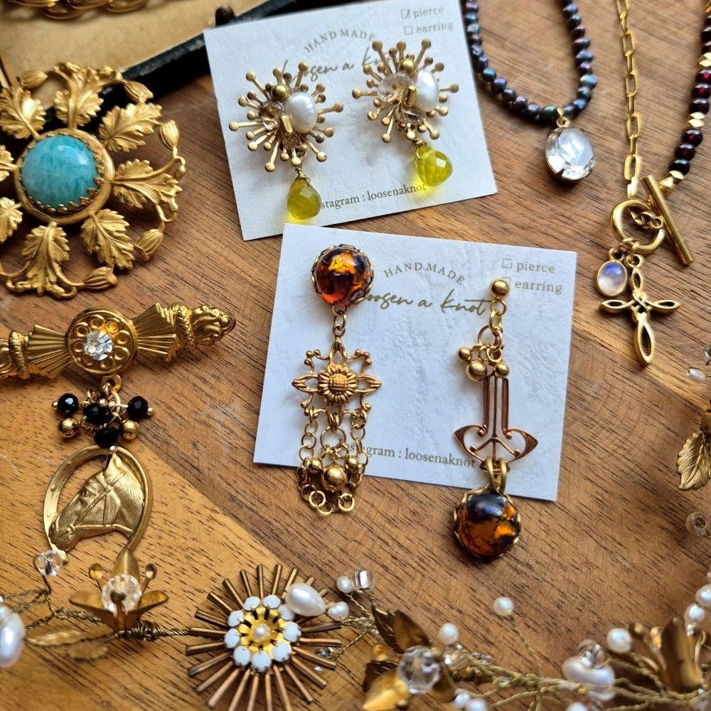 カラフルな天然石やガラス使いが春らしいアクセサリー、アンティーク・ヴィンテージビーズを使った一点物、手刺繍のブローチなど。個性が光る、心ときめくデザインが揃います。