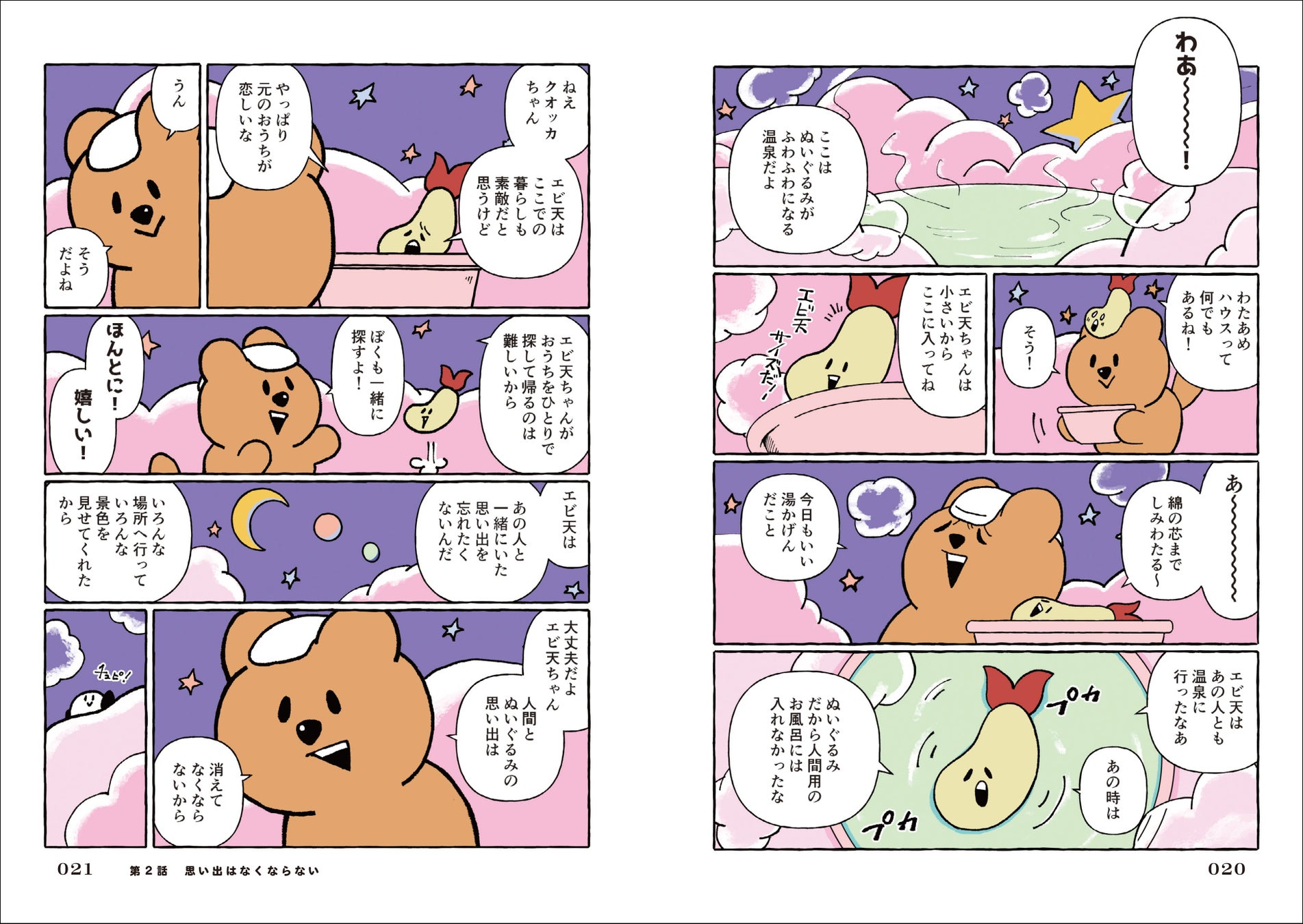 ぬいぐるみたちが持ち主に大切にしてもらった思い出や、大切にされたい気持ち…、ぬいぐるみのまわりで巻き起こる“あるあるネタ”を随所に散りばめ、クオッカちゃんとその仲間たちの背景や、ぬいぐるみシェアハウスの日常、時には人間視点のパラレルワールドを描きます。