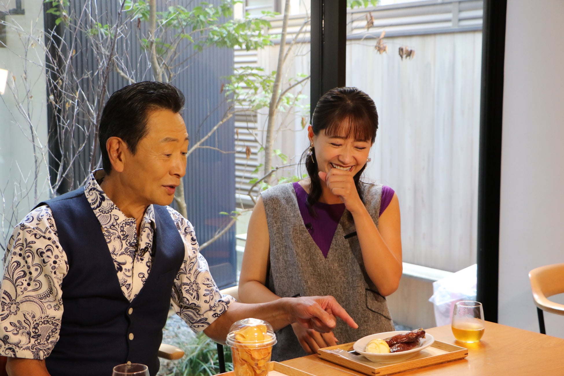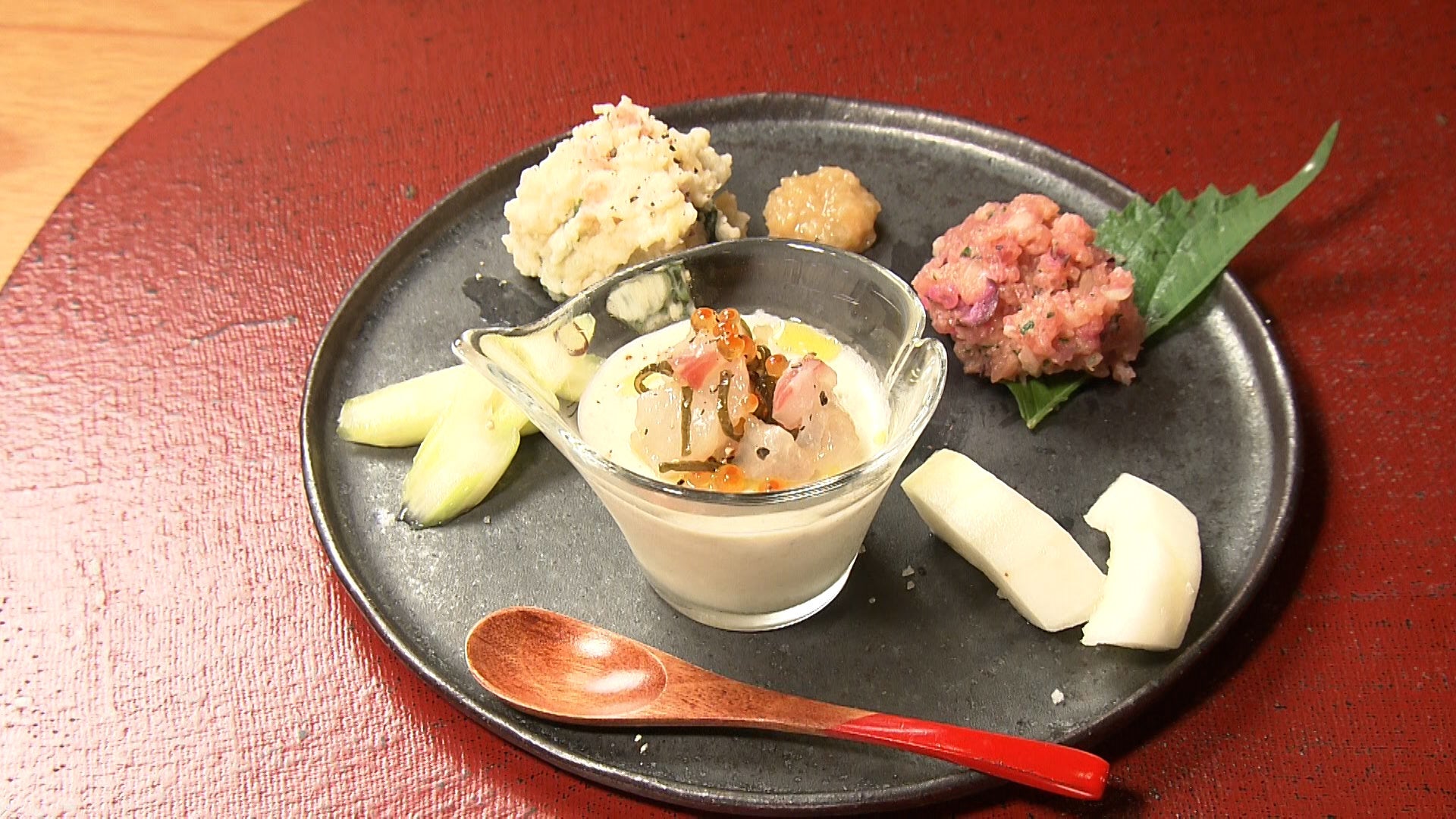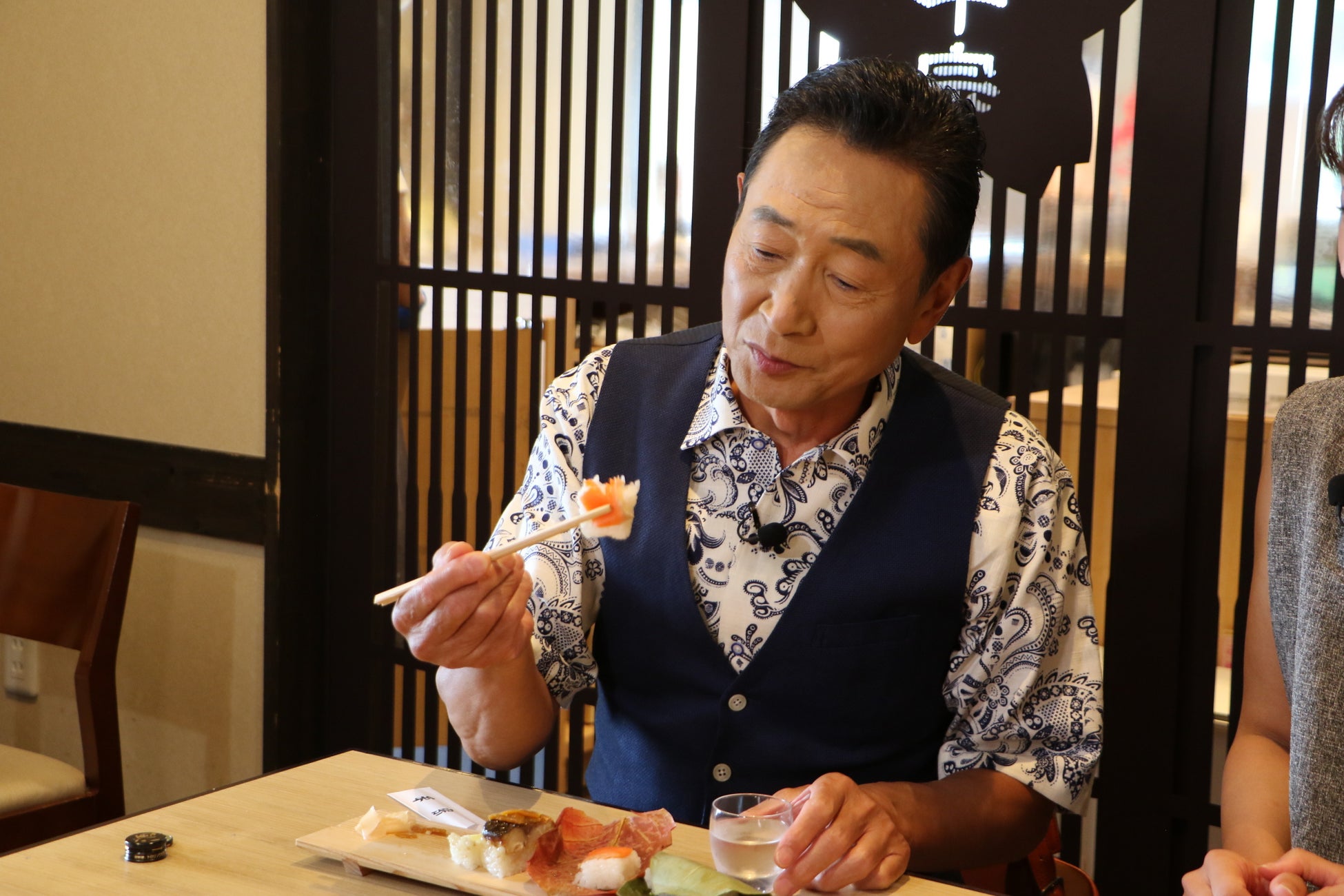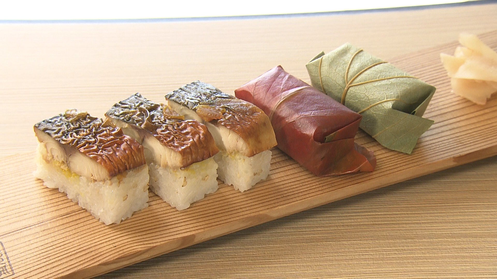 二人はさっそく平宗自慢のおすし、紅葉している柿の葉を使用した真っ赤な柿の葉寿司や新作の焼き鮎の柿の葉寿司などを堪能します。