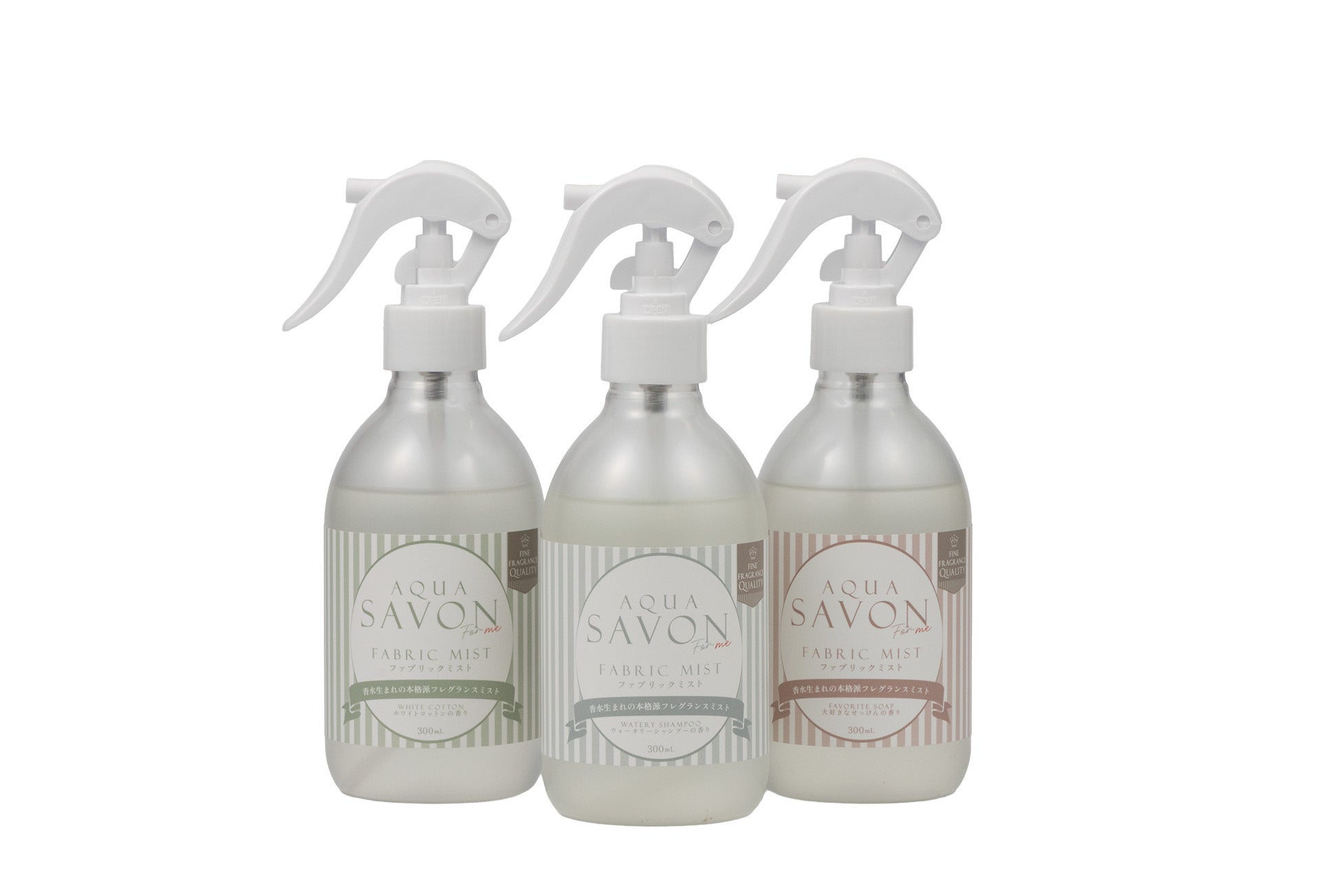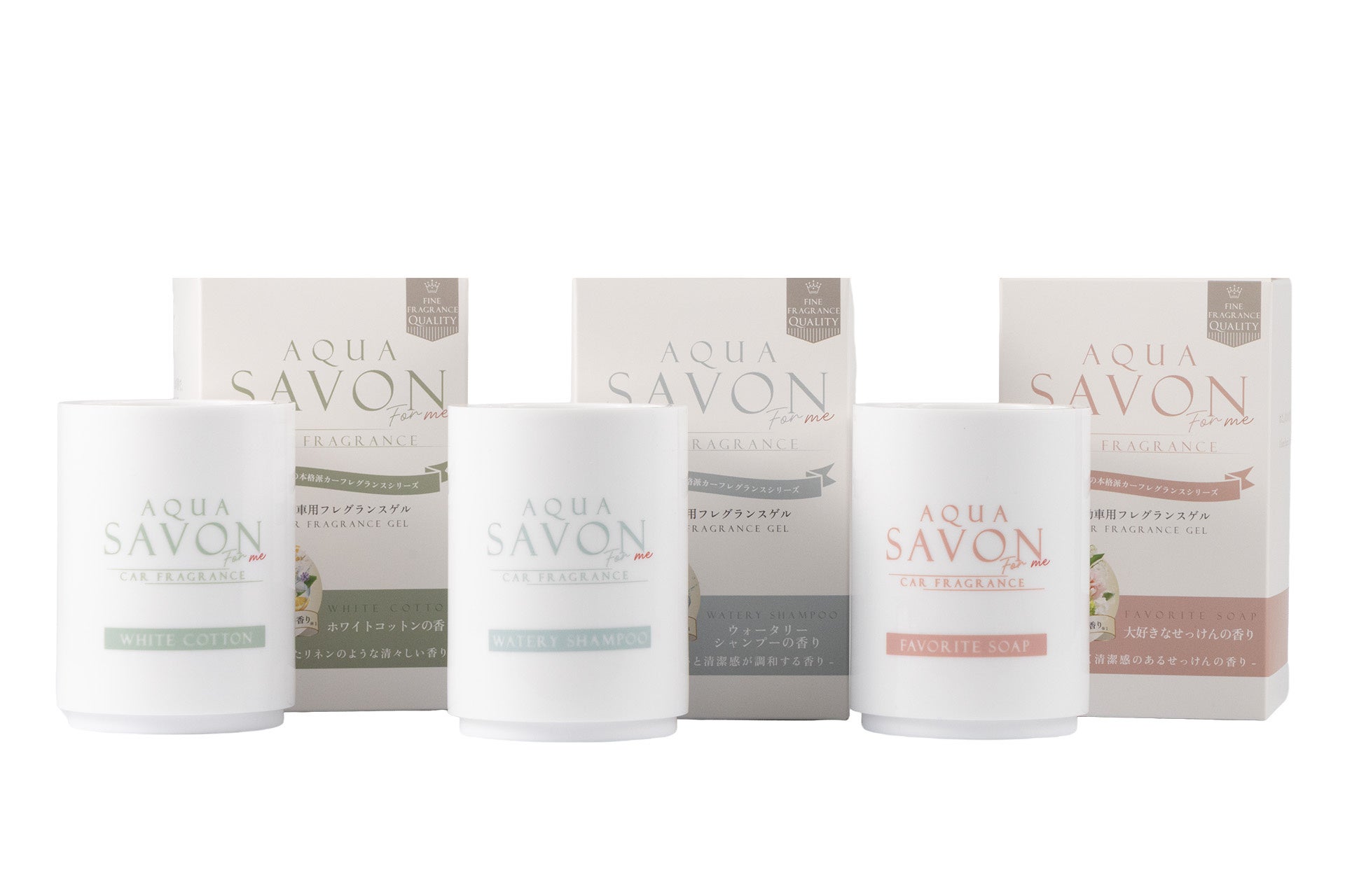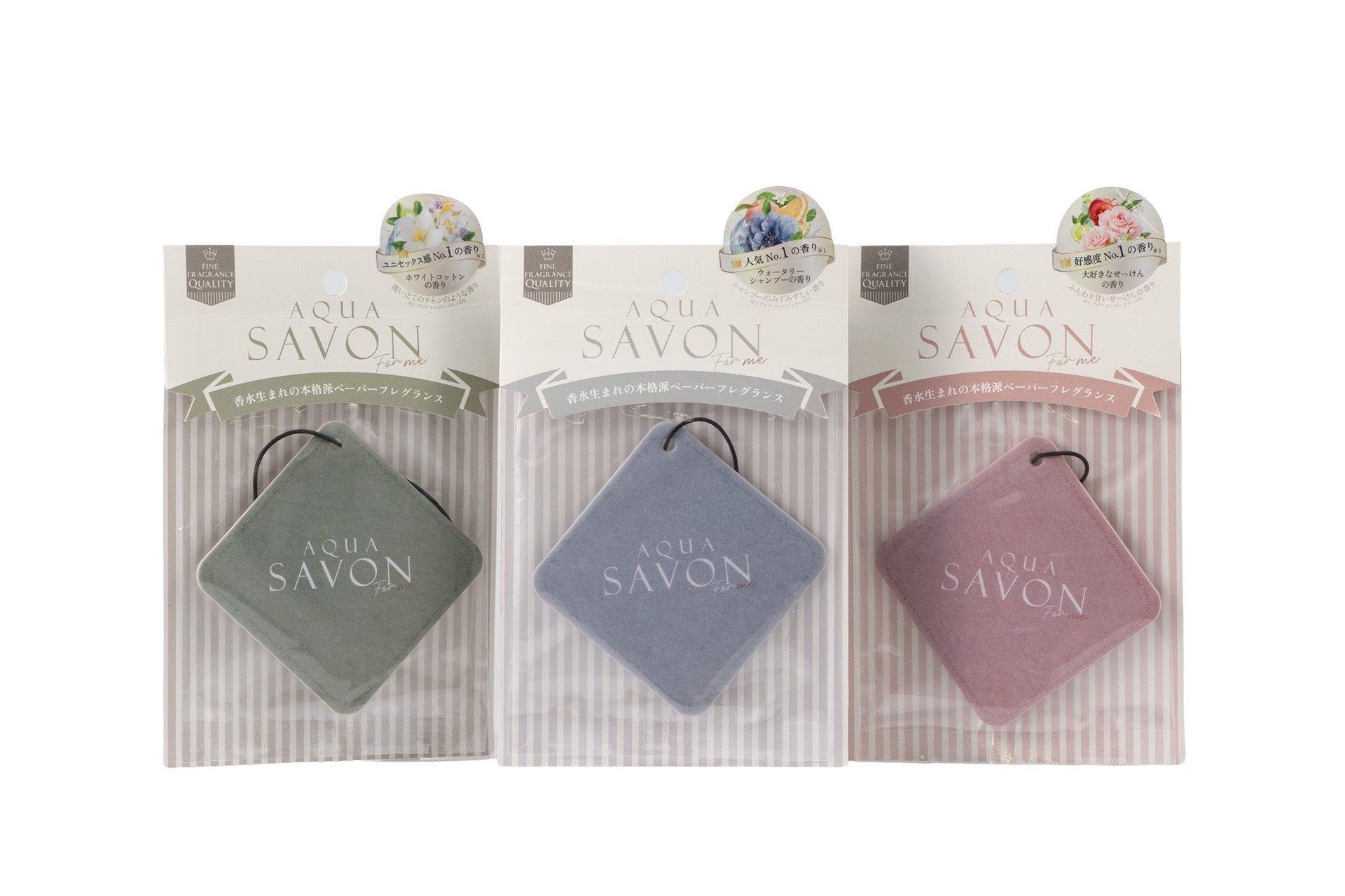 アクア シャボンシリーズの中でも特に人気の高い3つの香りを、全アイテム共通で展開します。