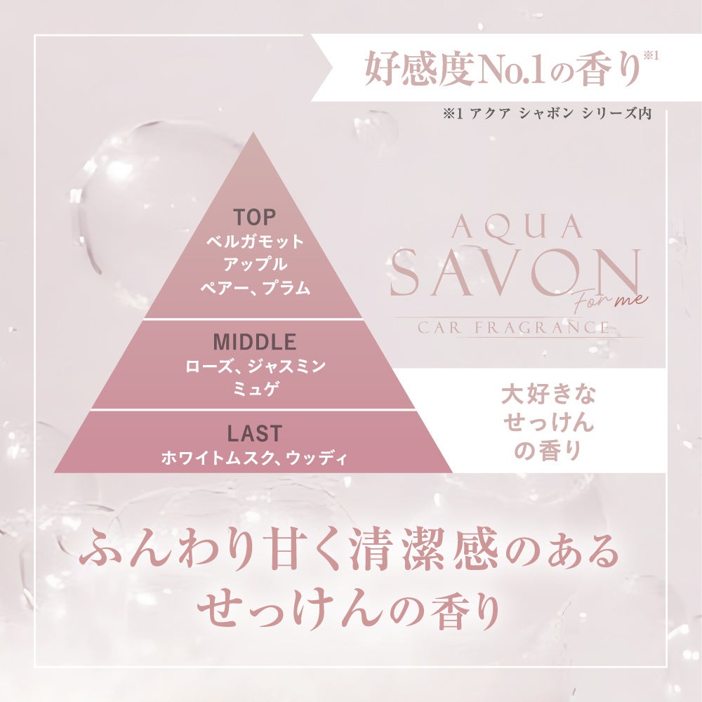 「わたしのための香り習慣。」をコンセプトにした新ブランド『アクア シャボン フォーミー』は、手に取りやすい価格でありながら、香り・品質・デザインには妥協せず、香りを特別なものではなく、日常の中で自然に楽しむものとして提案します。新ブランド第一弾として展開するのが、カーフレグランスシリーズ。車内は、日常の中でも自分だけの時間を過ごしやすいプライベート空間です。本シリーズは、香水のように奥行きのある芳香、車内の気になるニオイを抑える消臭機能(※1)を兼ね備えた、香水生まれの本格派カーフレグランスとなっております。毎日のドライブを、香りで心地よく整える「新しい香り習慣」として展開いたします。