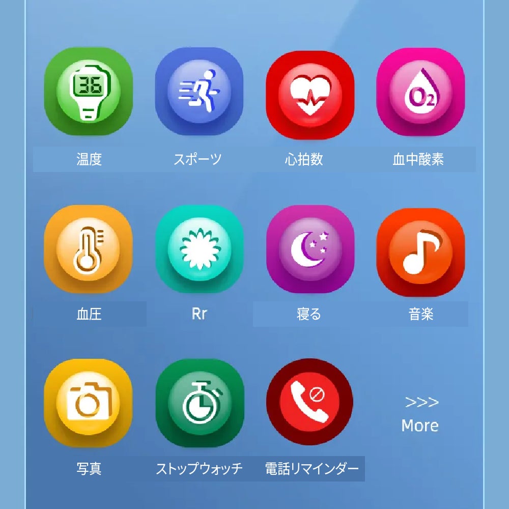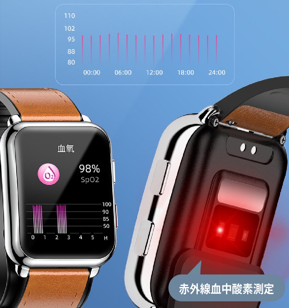1.65インチ大画面/体温/血中酸素/心拍数/運動/IP65/USB-A・磁気充電