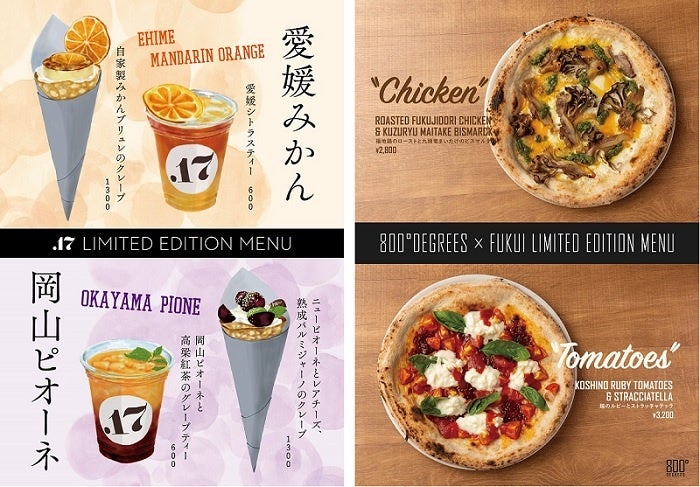 内容:福井県の地鶏、卵、トマト、まいたけを使用したピザの展開(計2種)