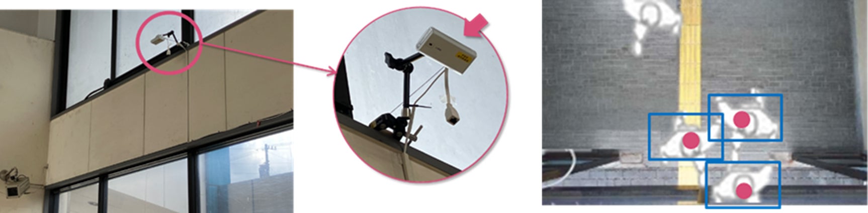 駅構内を利用する人数は、目視による計測結果を基準に比較した場合、誤差は3%以内に収まり、高精度な計測結果が得られた。なお、AIカメラの画角は、人物の判定を頭頂部で行う「真下画角モード」が最も有効であり、これにより人物同士の重なりによる誤検知を抑制できた。