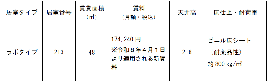 101号室(30㎡)、104号室(48㎡)、106号室(48㎡)、107号室(48㎡)、108号室(48㎡)、110号室(24㎡)、111号室(48㎡)、112号室(48㎡)、202号室(48㎡)、206号室(48㎡)、208号室(48㎡)、209号室(48㎡)、212号室(48㎡)、215号室(30㎡)