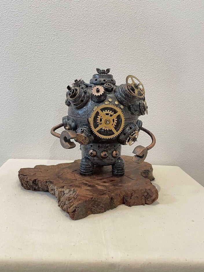 絵から始まり、10 年ほど前から陶芸作品を作る。生き物やロボットなどのオブジェが得意。