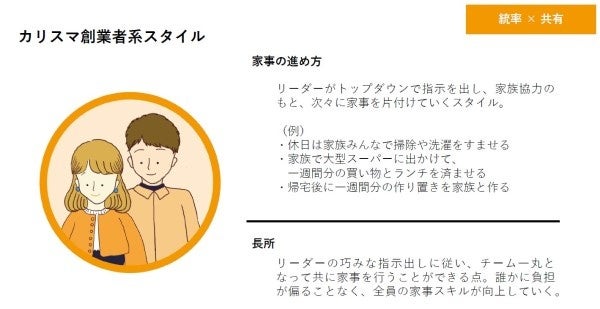 「家事マネスタイル」とは、家事シェアの仕方を企業のマネジメントに例えた家事マネジメントスタイルのことをいいます。 「スタートアップ」「従来企業型」「カリスマ創業者系」「外資グローバル企業」の4つのスタイルに分類してみました。