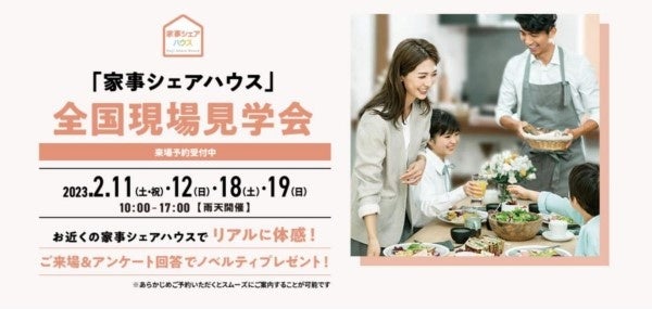 お近くの「家事シェアハウス」をリアルに体験できる全国現場見学会を2023年2月11日(土・祝)より開催します。詳細は以下特設サイトをご覧ください。