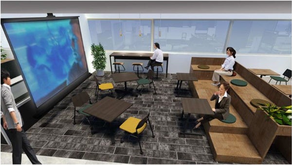複数のオープンミーティングエリアのほか、当社の創業事業である「映画」をイメージした大型スクリーンを備えたシアタースペースなどを配置し、エンタメ企業としてとしての面白さや遊び心を表現しました。社員だけでなく来社されるお客様もワクワクしていただけるような空間を創り、質の高いコミュニケーションが生まれる環境を目指します。