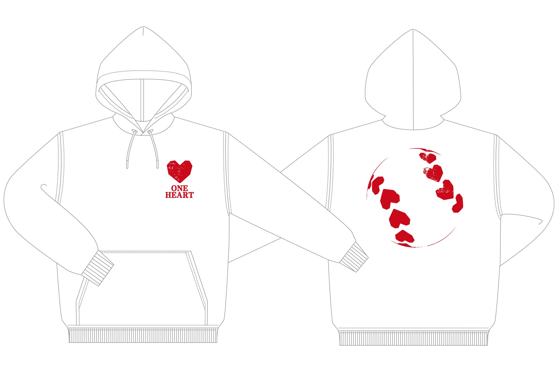 ONE HEARTの文字をあしらったパーカー。胸元にハートと、背中にボールの縫い目を表現したデザイン。 Lサイズのみ。