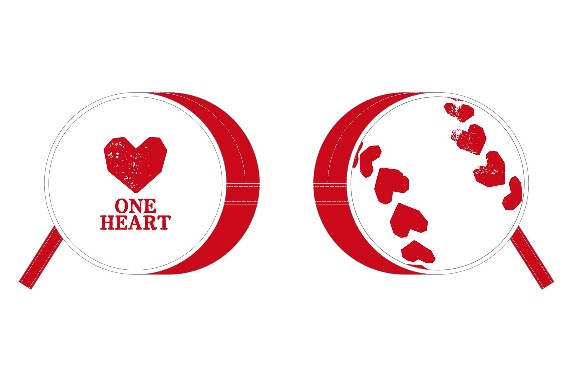 キャッチフレーズ「心をひとつに夢の先まで!」から、ONE HEARTの文字をあしらったラウンドポーチ。