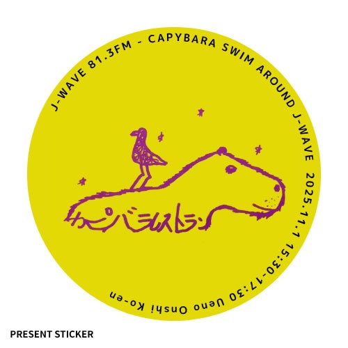 さらに、『CAPYBARA RESTAURANT』をモチーフにしたロングTシャツやステッカーなど、イベント当日しか手に入らない限定アイテムを販売いたします。販売場所や価格などの詳細は、後日J-WAVE公式イベントXアカウント(@jwavelive2000)にてお知らせいたします。