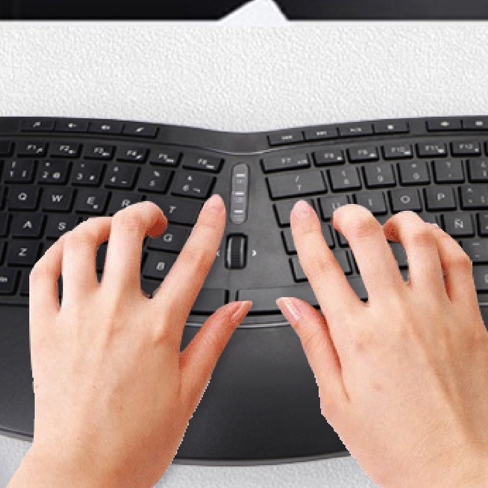 キーを打ちやすいようキーボードは角度がついており、手首を外側に曲げる必要がありません。