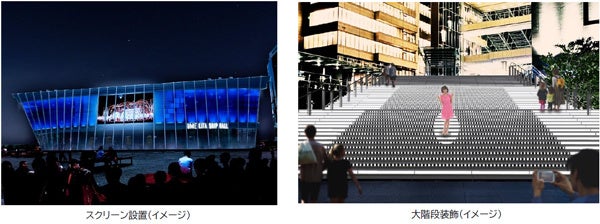 グランフロント大阪会場では、うめきた広場内・うめきたSHIPホールに巨大スクリーンを設置し、最新技術を駆使して、ここでしか見られない貴重な映像を毎晩上映。スペシャルムービーは宝塚歌劇機関誌「歌劇」の表紙&巻頭ポート撮影を2010年より担う世界的なフォトグラファー レスリー・キー氏がディレクションいたします。さらに、うめきた広場の大階段を宝塚歌劇のイメージにライトアップいたします。開放的な空間で、宝塚歌劇の華やかな世界観をご体感ください。