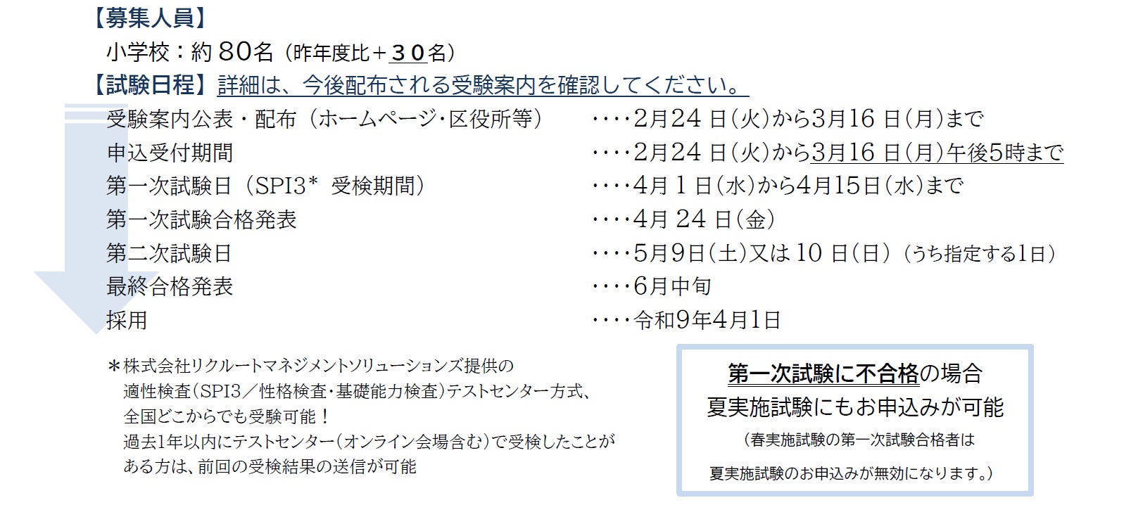 適性検査【SPI3】を第一次試験として実施する試験です。令和8年2月24日(火)から申込受付を開始します。
