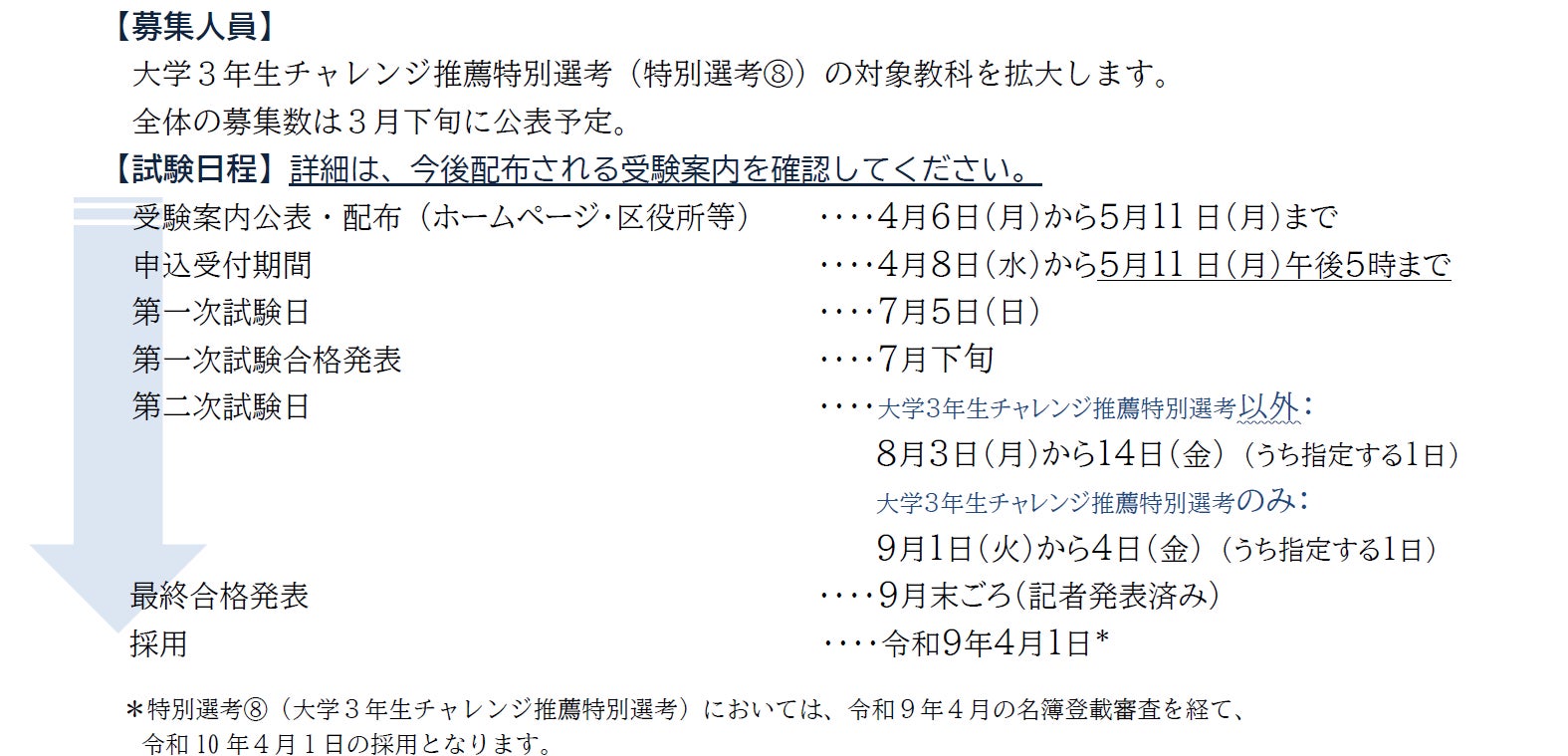 夏に実施している従来の選考試験です。令和8年4月8日(水)から申込受付を開始します。