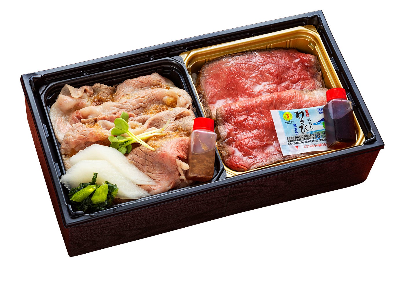 赤身のおいしさが評判の土佐あかうし。柔らかでジューシーなローストビーフと、特製たれで仕上げた牛飯を贅沢に食べ比べできるお弁当。