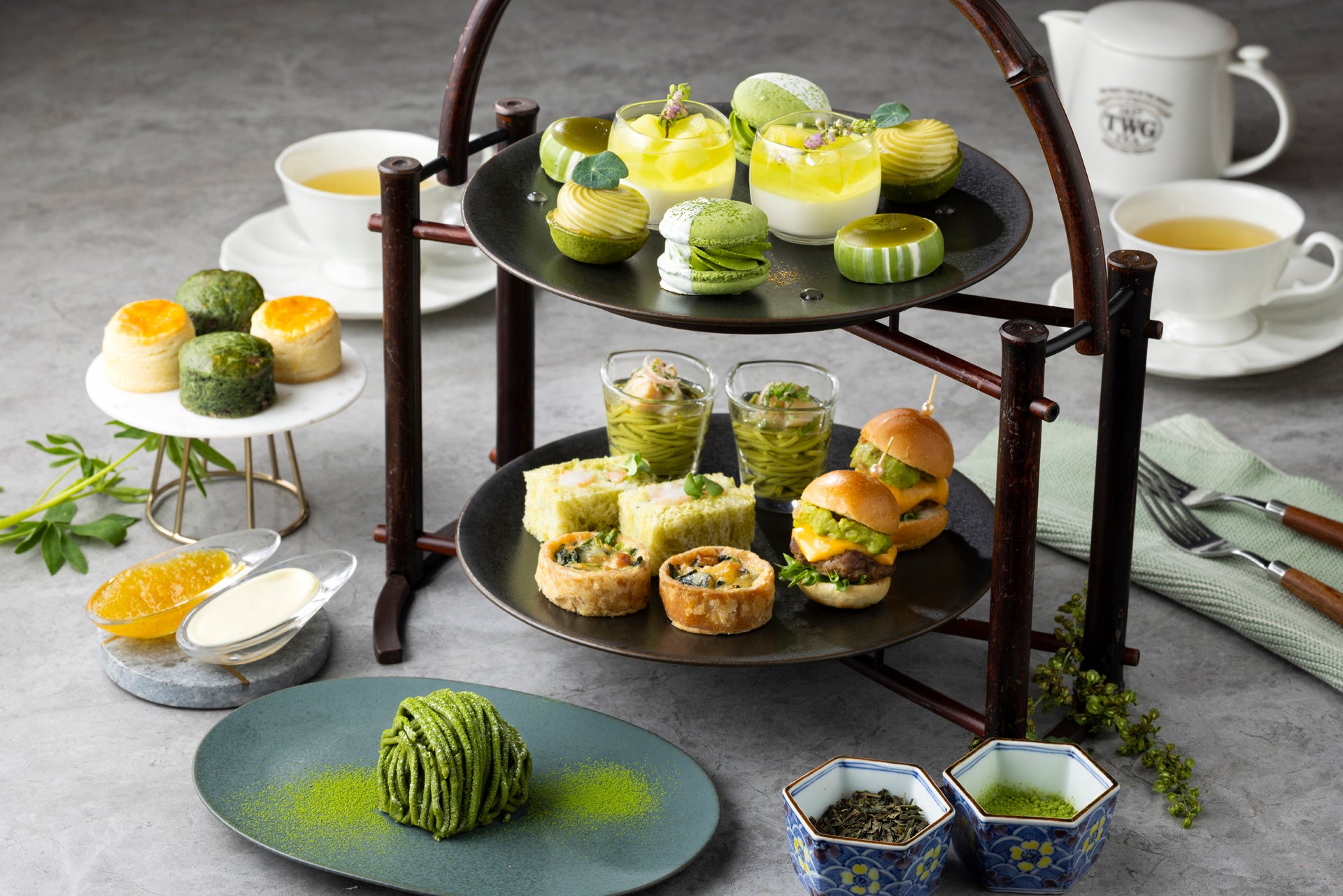 主役となる「抹茶のモンブラン」をはじめ、メロン、緑茶、よもぎ、ホウレン草など、初夏を感じさせる “緑”の食材を贅沢に取り入れたスイーツとセイボリーの数々をご用意。お飲み物は世界的ティーブランド「TWG」のグリーンティーを含む多彩なラインアップをカフェフリースタイルでお楽しみいただけます。