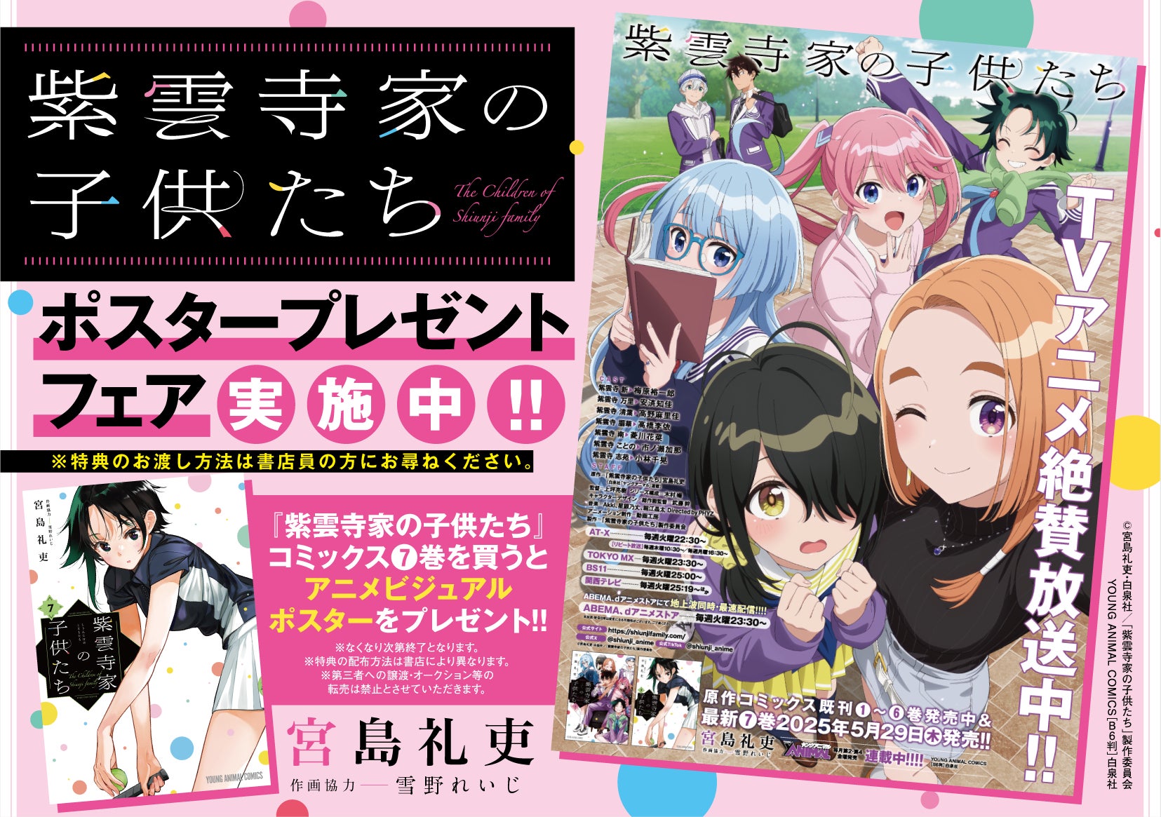 フェア参加書店で『紫雲寺家の子供たち』7巻を買うとアニメビジュアルポスターをプレゼント!