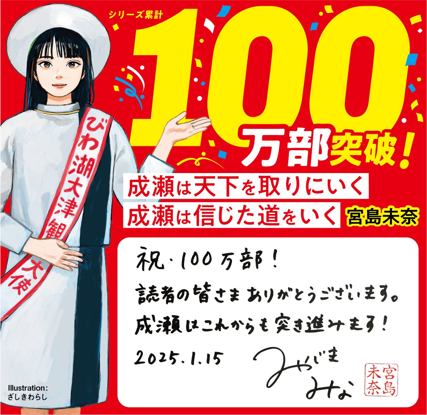 『成瀬は天下を取りにいく』シリーズ累計100万部突破! 各界からお祝いの声続々! SNSでアクスタプレゼントキャンペーンも!