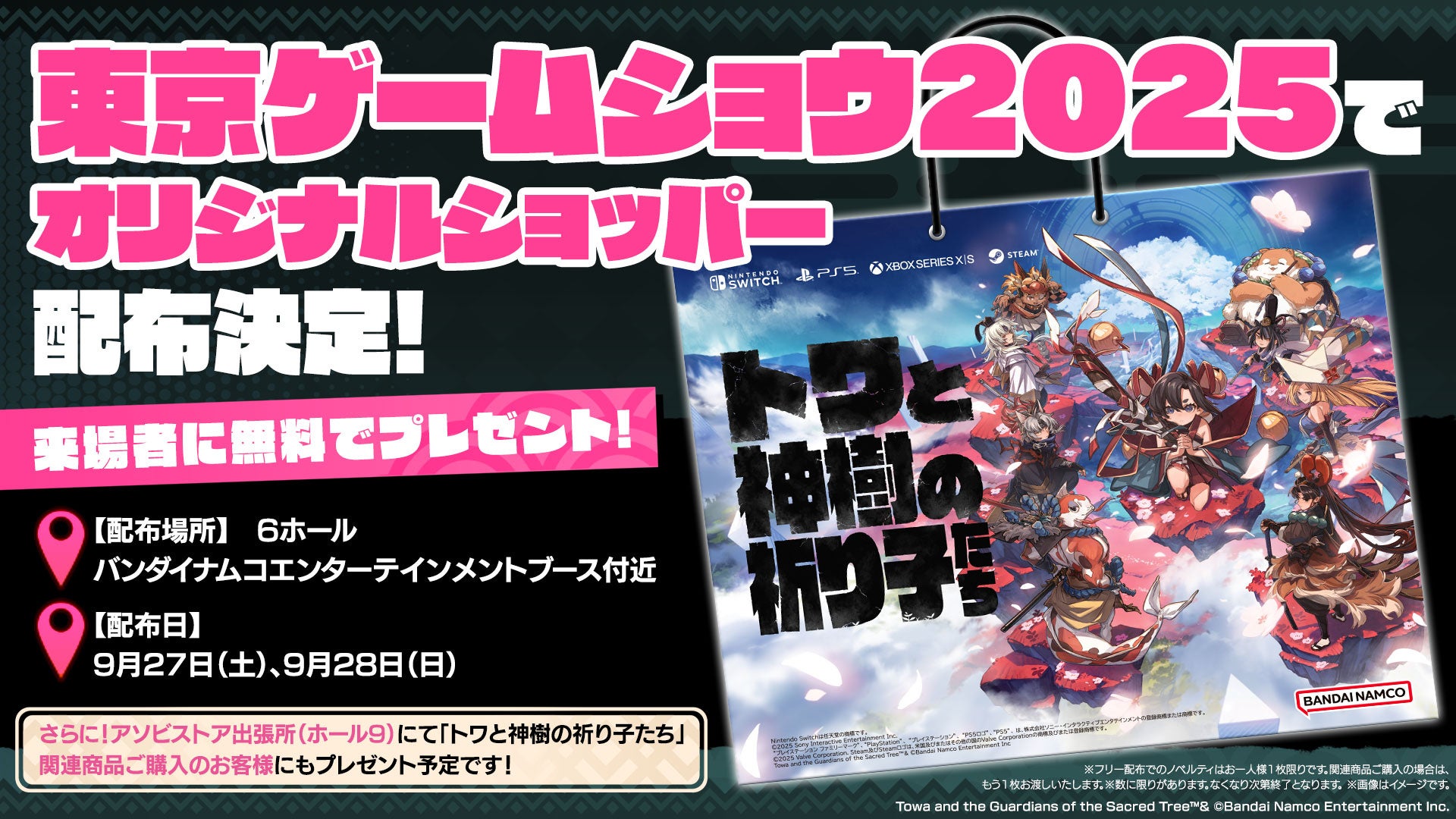 いよいよ今週2025年9月18日(STEAM®版9月19日)に発売を迎える完全新作アクションアドベンチャー、「トワと神樹の祈り子たち」のオリジナル大型ショッパーをフリー配布いたします!