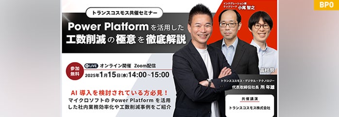 トランスコスモスは、オンラインセミナーAI導入を検討されている方必見!「Power PlatformでAI活用が身近なものに ~実際に業務で使えるAIを作ってみよう~」を1/15(水)に開催します。