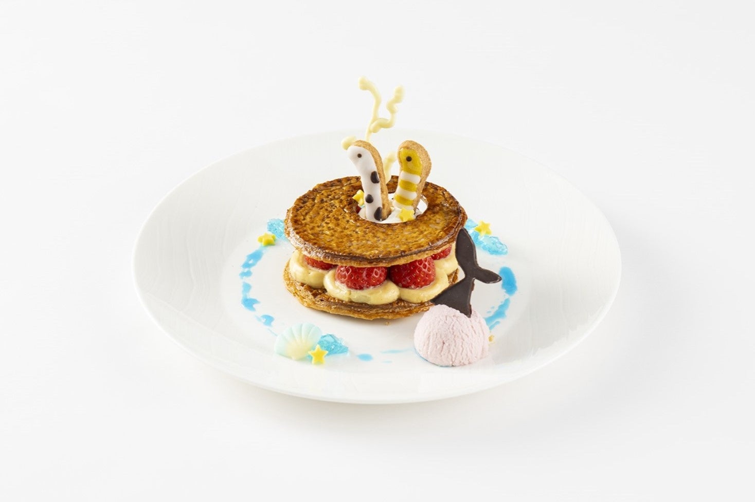 また、カフェタイムには水族館の人気者たちがシェフ特製の一皿として新登場。シャチをイメージした黒いシフォンケーキにたっぷりの生クリームと季節のフルーツをのせた「シャチカラーのシフォンケーキ」や、サクサクのパイ生地からチンアナゴとニシキアナゴが顔を覗かせる「チンアナゴのクッキーをのせたミルフィーユ」など、見て楽しい食べて美味しいデザートをご提供いたします。さらに「せとうちアフタヌーンティー」は春からより水族館らしく、より気軽にお楽しみいただけるよう一新いたします。1925年から続く老舗「神戸紅茶」より日本紅茶協会認定ティーアドバイザーがセレクトした4種類の紅茶をはじめ、EXILEのTETSUYA氏がプロデュースするAMAZING COFFEEのAMAZING BLENDを使用したコーヒーなど、お好きなドリンクでアフタヌーンティーをお楽しみください。