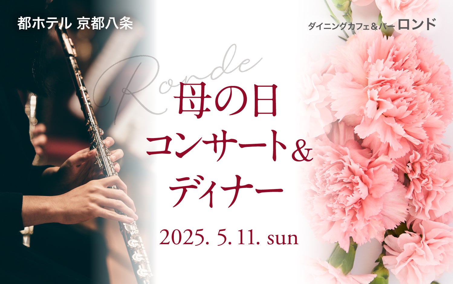 都ホテル 京都⼋条(所在地:京都市南区⻄九条院町17)は、2025年5⽉11日(日)の母の日に、ダイニングカフェ&バー「ロンド」にて「母の日コンサート&ディナー」を開催します。この日のためにロンドシェフ 益が腕によりをかけたスペシャルディナーと、京都市立芸術大学音楽学部の学生によるチャペルでのフルート四重奏をお楽しみいただける一夜限りのイベントです。大切なお母さまへの日頃の愛と感謝とともに、一緒に素敵な時間を過ごされてみてはいかがでしょうか。
