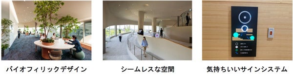 また、生産性向上が期待される「バイオフィリックデザイン」(※4)や、利用者に最適な外気導入のタイミングを知らせ、排煙窓の開閉を促すシステム「気持ちいいサインシステム」(※5)などを導入し、利用者が高い集中力を発揮できる環境を整えました。