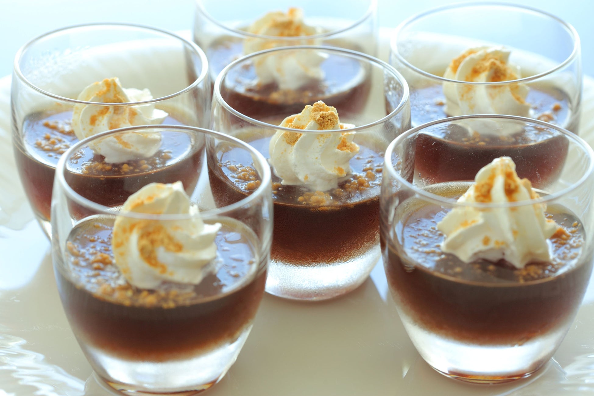 奄美群島で古くから作られる黒糖。夏休みに祖父母の家でかじった黒糖のかけらを思い出させるような、素朴で懐かしい甘みをデザートに仕立てました。ヨーグルトとゼリーで、黒糖のやさしい味わいを心ゆくまでお楽しみください。