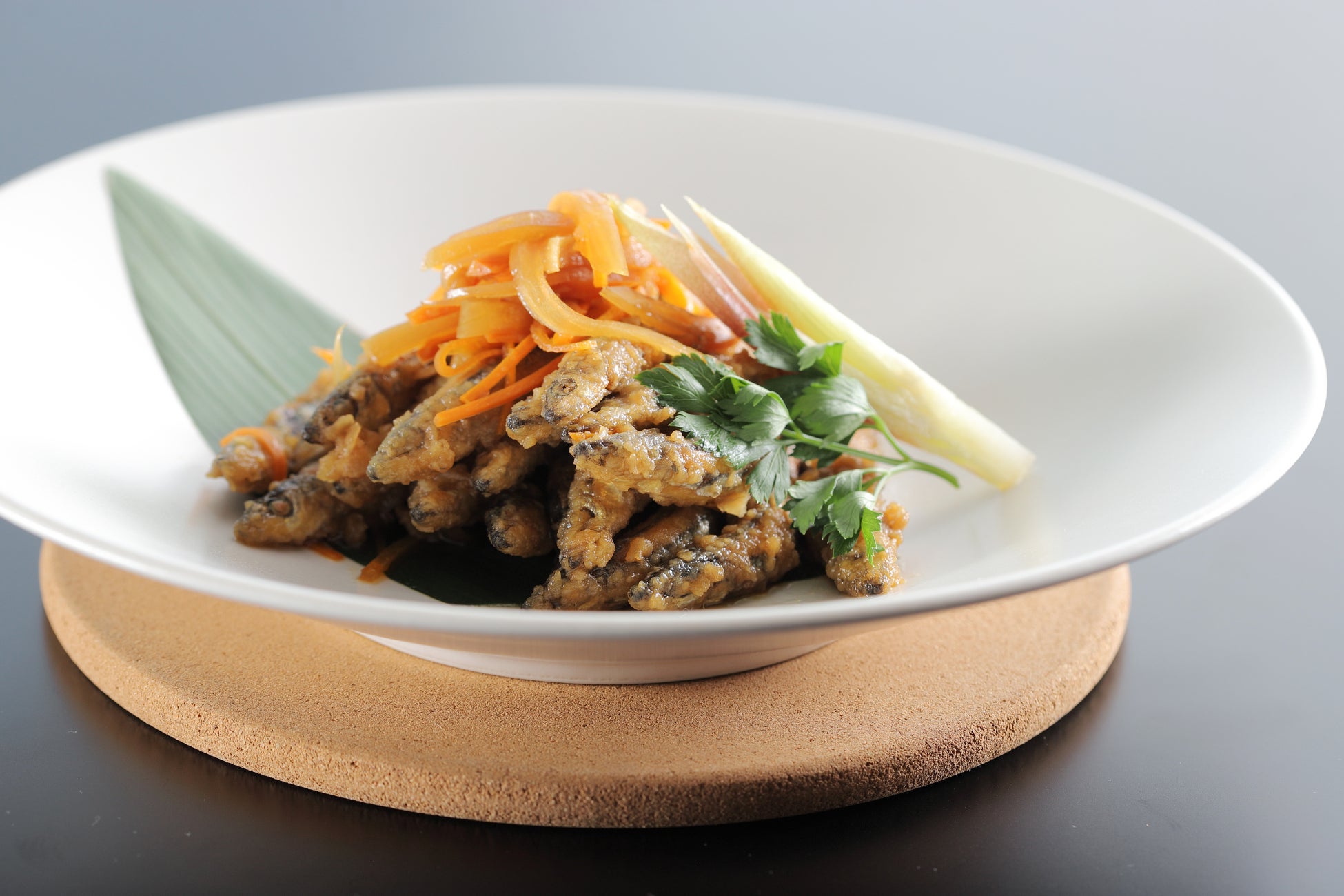 新鮮なきびなごを使用した南蛮漬け。さっぱりとした酸味がきびなごの旨みを引き立て、箸休めにも最適な爽やかな一品です。