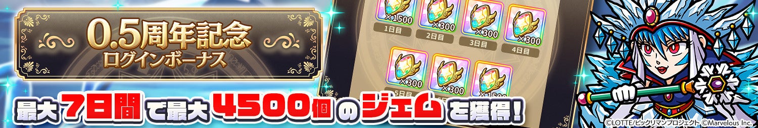 7日間で最大4,500ジェムを獲得できるログインボーナスを開始いたしました!