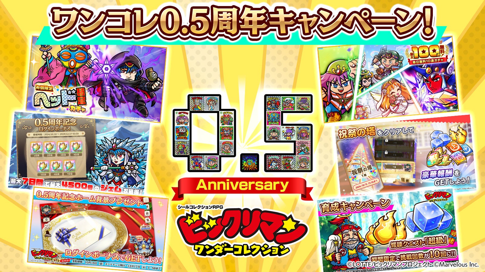 株式会社マーベラス(代表取締役社長:佐藤 澄宣/所在地:東京都品川区)は、シールコレクションRPG『ビックリマン・ワンダーコレクション』にて無料100連キャンペーン等を含む「ワンコレ0.5周年キャンペーン」が2024年10月18日に開始されたことをお知らせいたします。また併せて期間限定イベント「凍る世界 氷王サタンマリア」、ワンコレオリジナル新キャラ氷王サンタマリアが登場する「凍てつく氷の女王ガチャ」、ダメージチャレンジ「狂乱蘇生 魔祖王・始祖ジュラ!」等を開始いたしました。